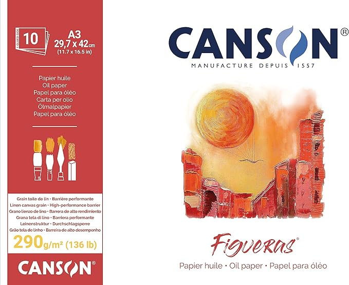 Canson® Figueras® is een hoogkwalitatief papier dat speciaal ontwikkeld werd voor olieverf. Het combineert technische prestaties met artistieke kwaliteit: een uitstekende kleurweergave en een natuurlijke korrel, met linnen doek-effect. Dankzij de doeltreffende afwerking blijft de schilderlaag aan de oppervlakte.